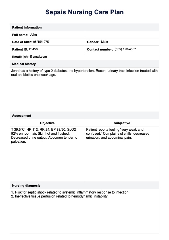 Sepsis Nursing Care Plan Template