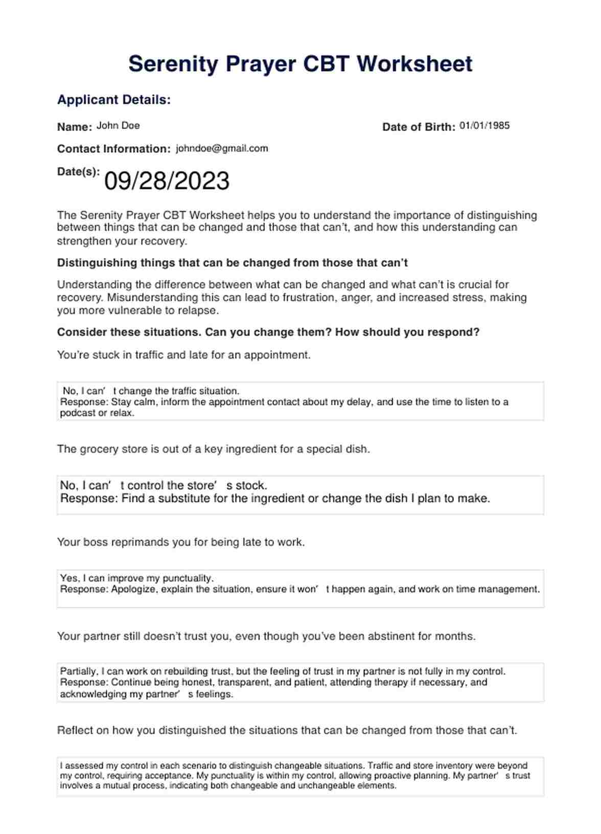 Serenity Prayer CBT Worksheet