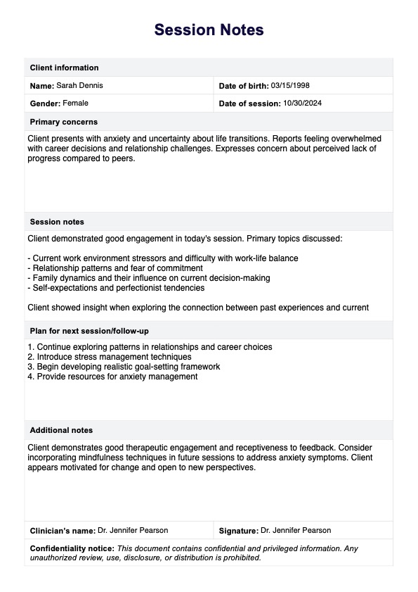 Make documentation during clinical sessions easier with our intuitive Session Notes Template.