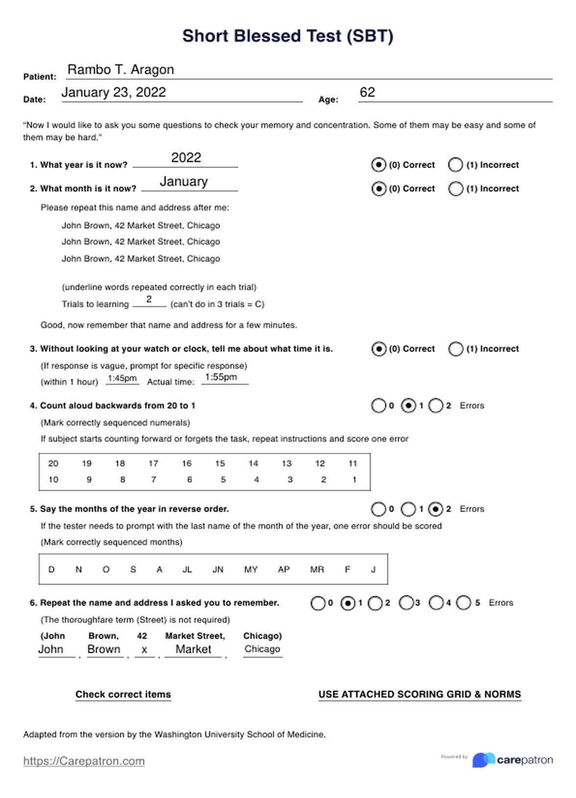 No. If they already have a severe cognitive impairment, you shouldn’t use this test on them anymore because you’ll likely get the same results, and they might not even be able to answer the items in the first place. You should only use this on patients who can still communicate and hear clearly.