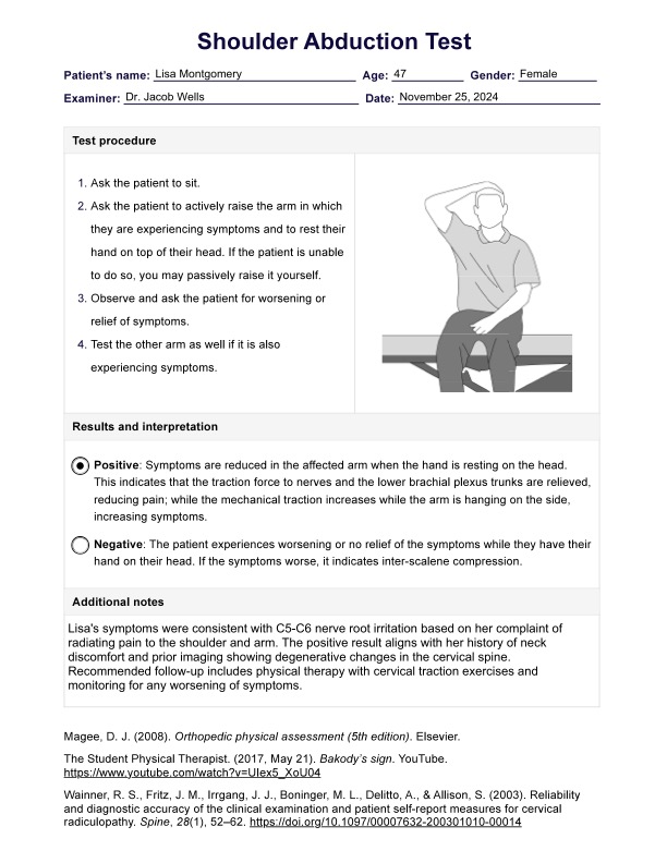 Learn more about performing the Shoulder Abduction Test here, to see if your patient's shoulder pain involves their cervical nerves. Try our template today.