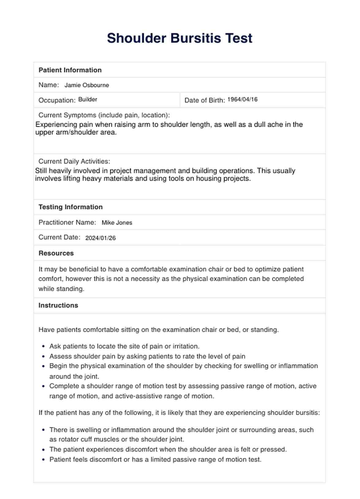 Experiencing inflammation and pain in the shoulder area? Learn about the Shoulder Bursitis Test and receive a free template and example!