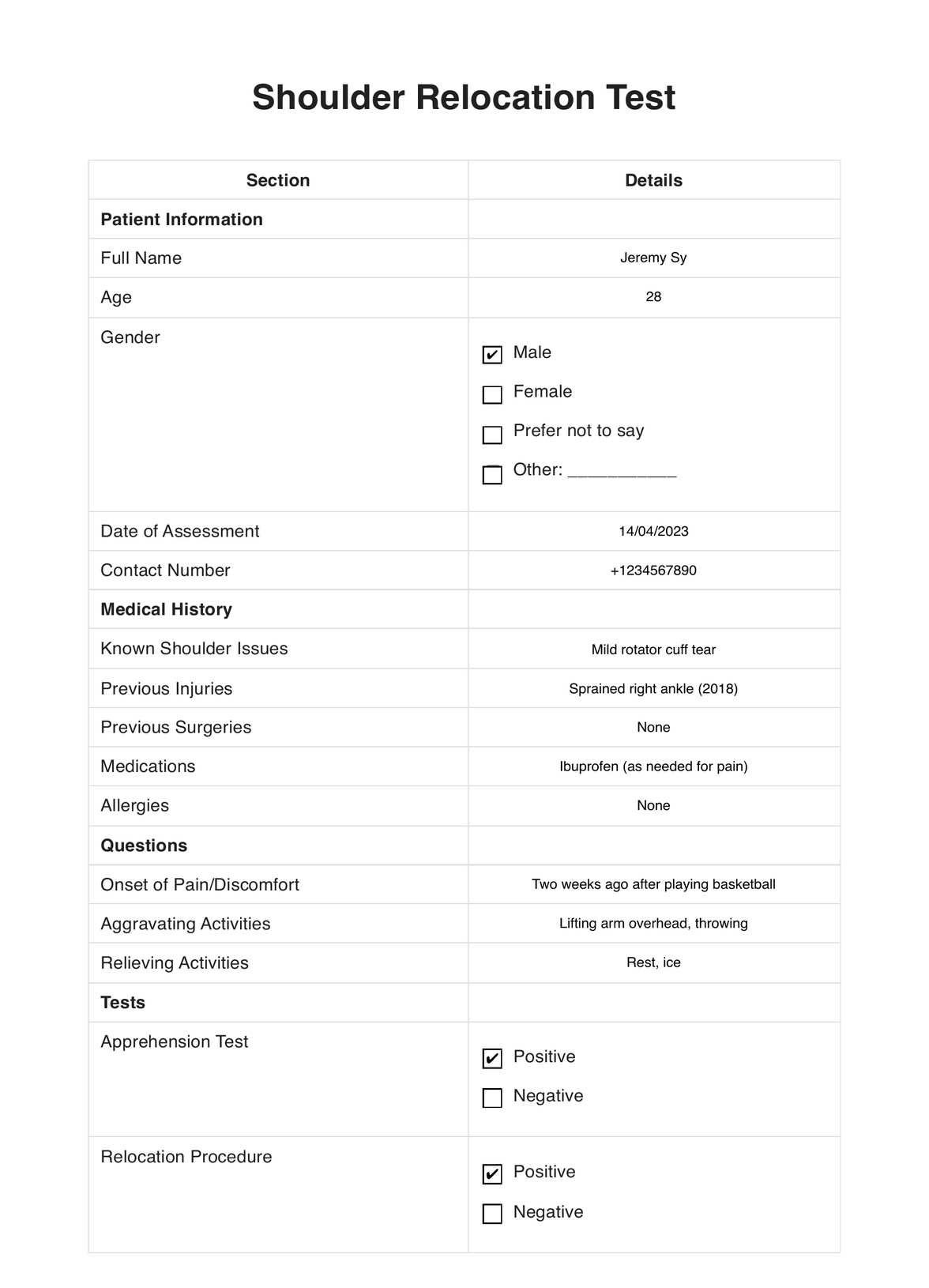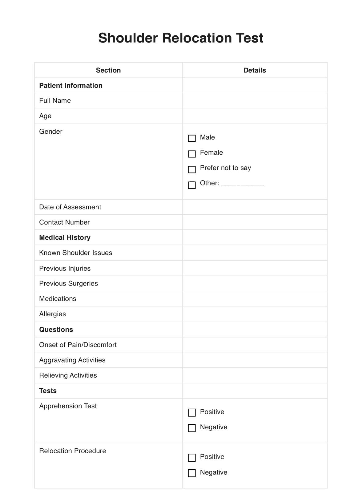 Dive deep into the Shoulder Relocation Test with our comprehensive guide. Get insights, expert tips, and a free PDF template in one place. Try Carepatron today!