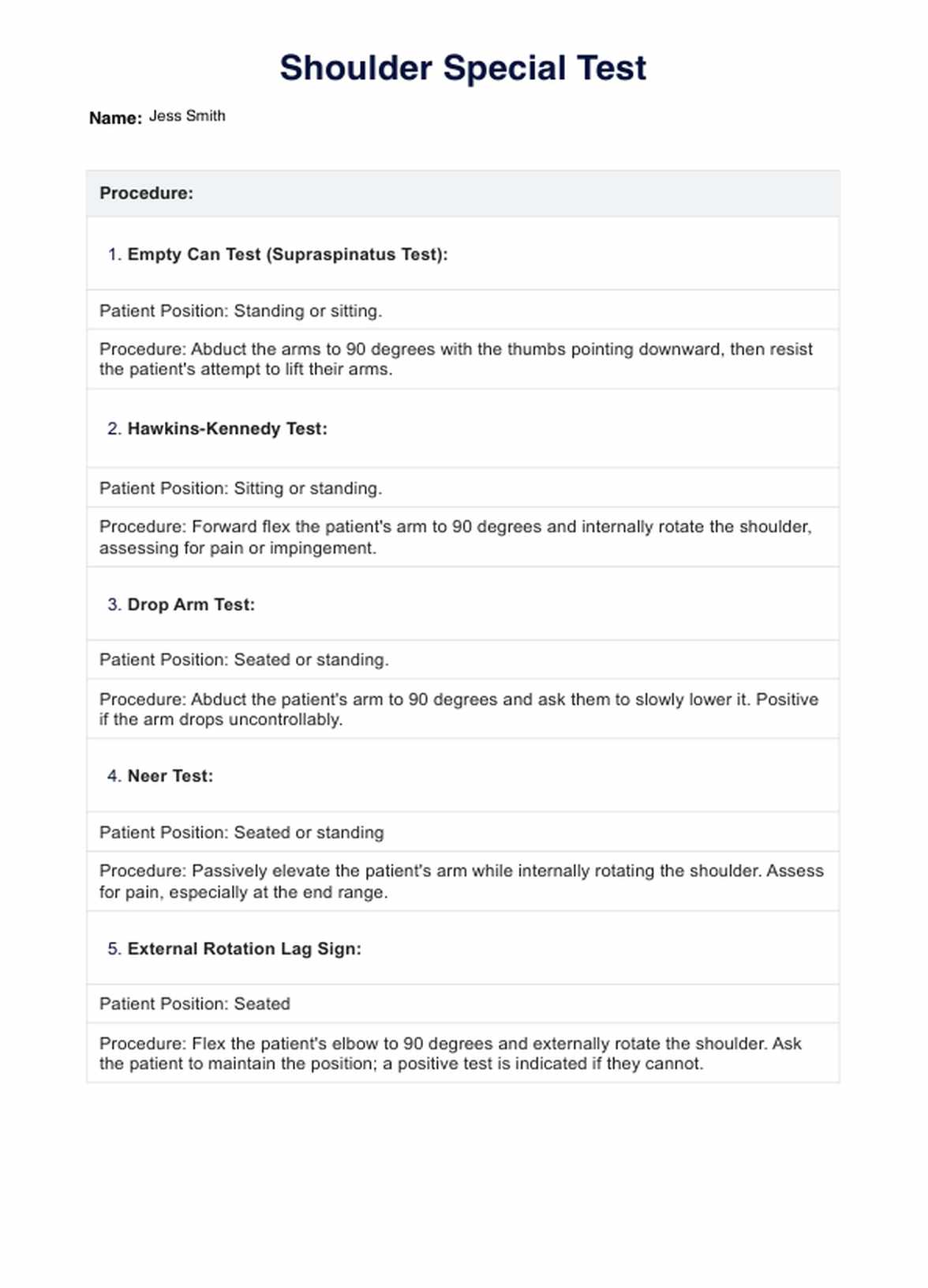 Shoulder Special Test Template