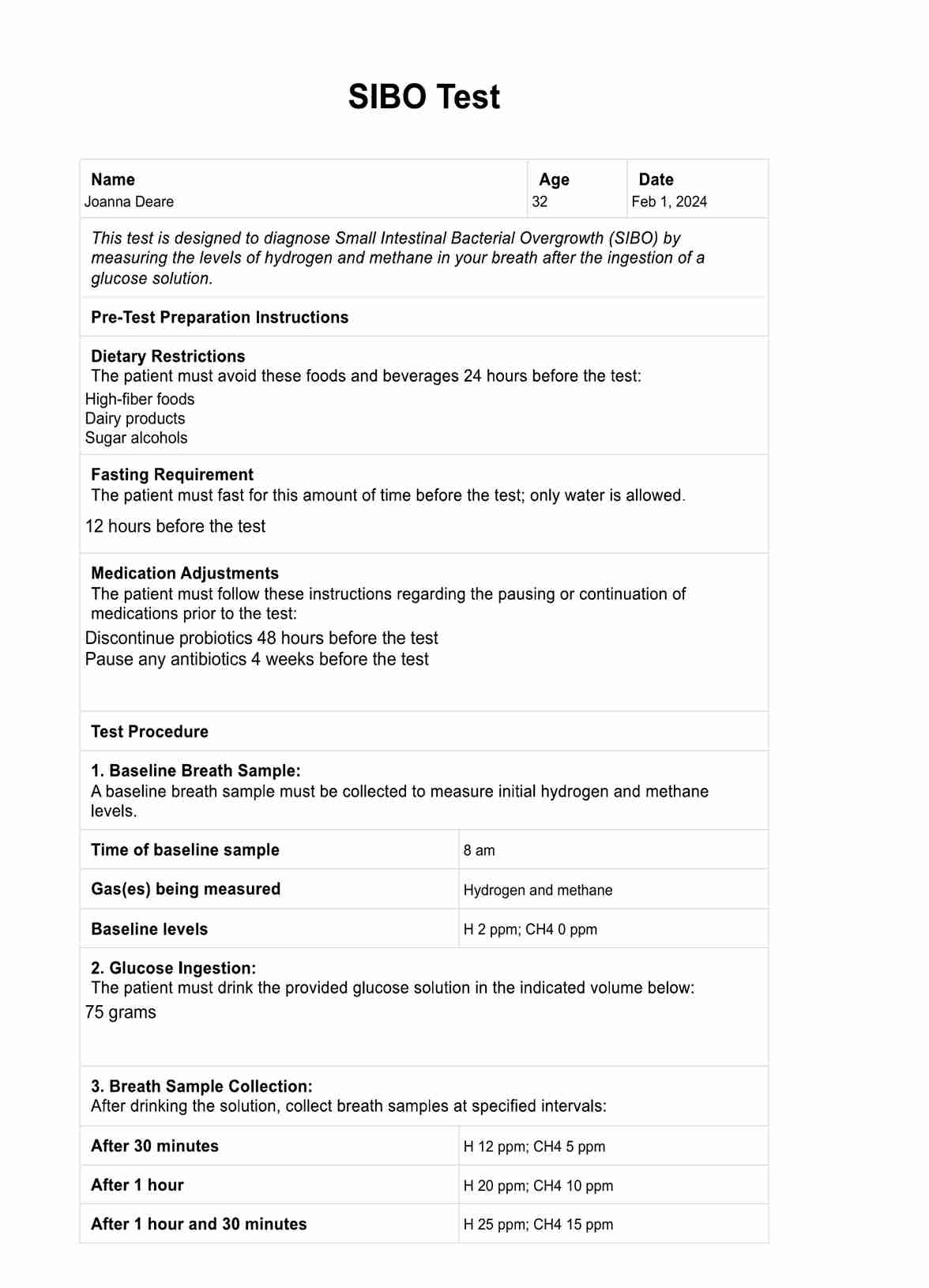 Discover how to diagnose and manage Small Intestinal Bacterial Overgrowth with our comprehensive SIBO Test Template, designed for healthcare professionals.