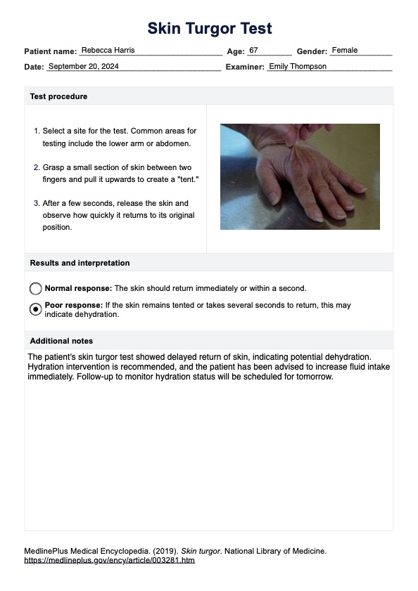Learn about the Skin Turgor Test, a quick method to assess hydration and diagnose dehydration by observing skin elasticity.