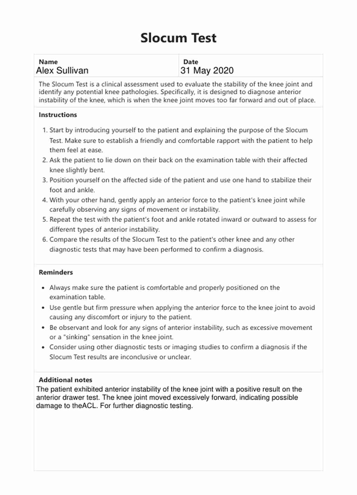 The Slocum Test measures the integrity of the ligaments and joint capsule in the knee. It also helps diagnose anterior cruciate ligament injuries and tears.