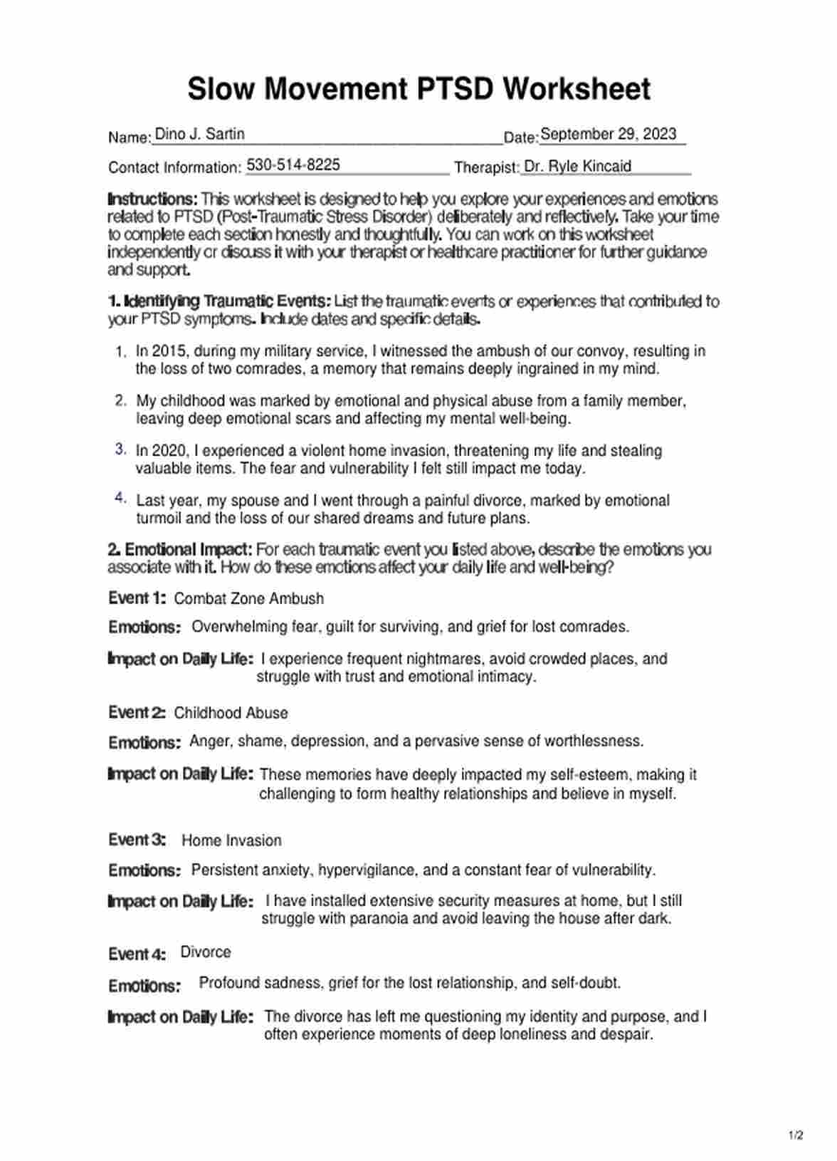 You can access the Slow Movement PTSD Worksheet in PDF format through various online resources and mental health websites or by obtaining it from a therapist or support group facilitator who may use it as part of their therapy sessions.