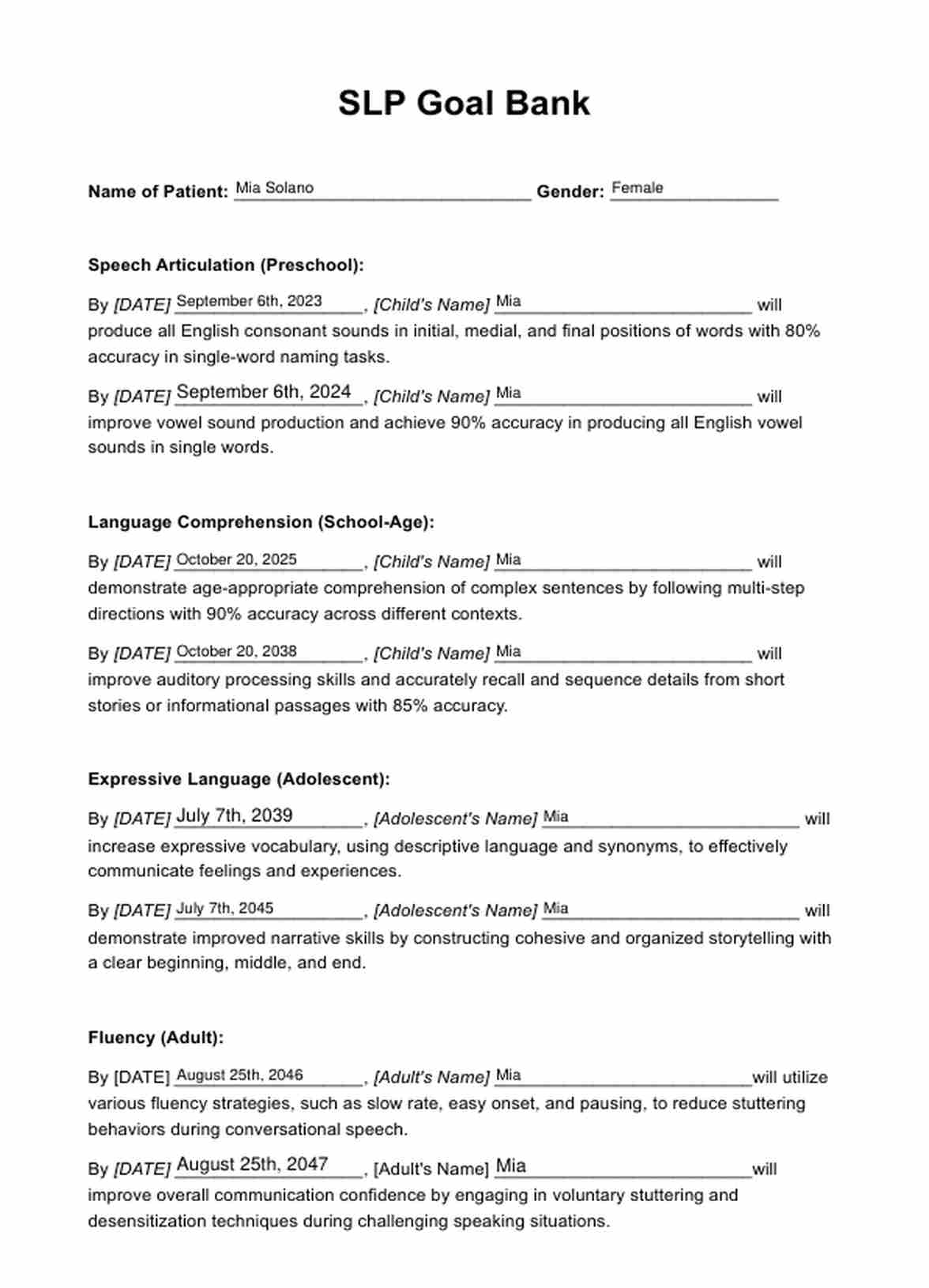 In speech therapy, SLP Goal Banks serve multiple purposes, including writing initial goals for children or adults when they first see an SLP and updating goals as therapy progresses. Furthermore, they prove useful in tracking the progress of both the clients and the SLP over time.