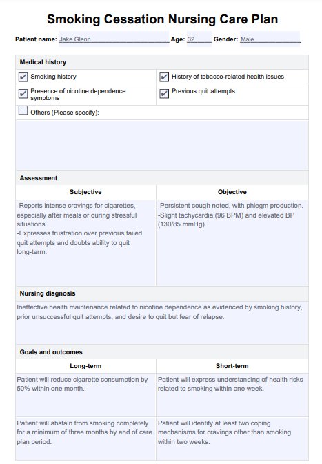 Explore our Smoking Cessation Nursing Care Plan Template, designed to assist in quitting smoking with assessment, planning, and care steps for individual needs.