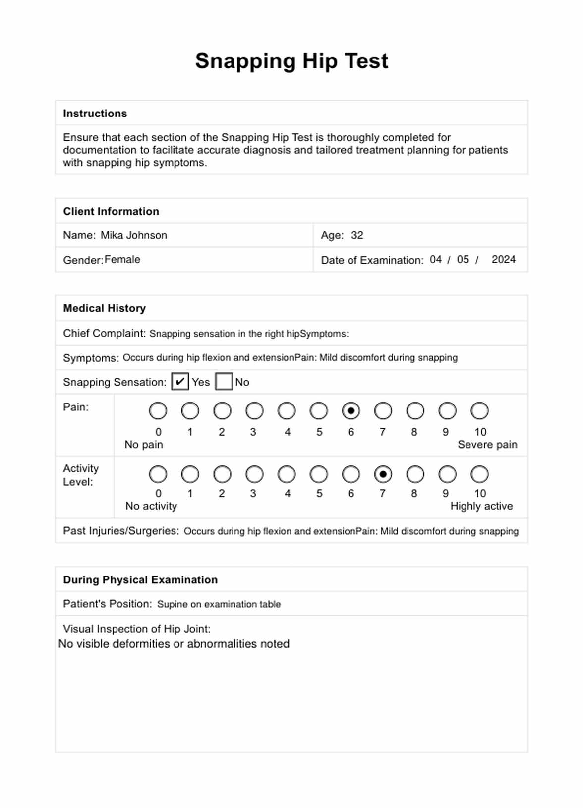 Individuals experiencing snapping sensations or discomfort in the hip joint during movement, such as walking, running, or bending, may benefit from undergoing a snapping hip test. It is particularly relevant for those suspected of having snapping hip syndrome or other hip pathologies.