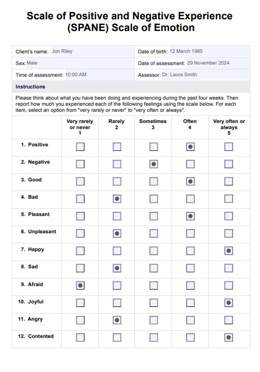 Assess your client's emotional well-being using the SPANE Scale of Emotion to enhance treatment plans and interventions during sessions.