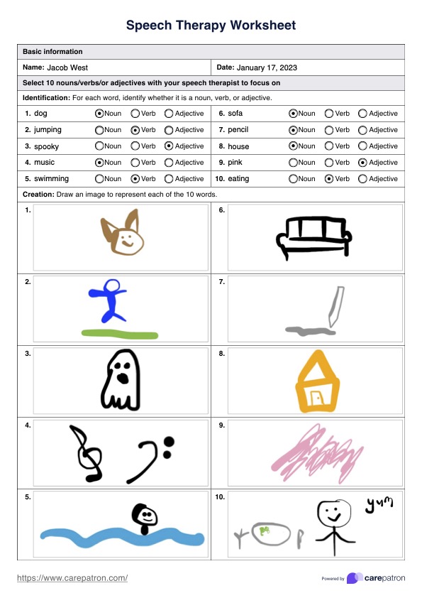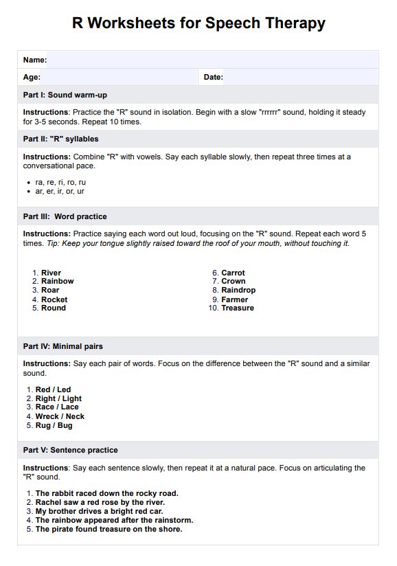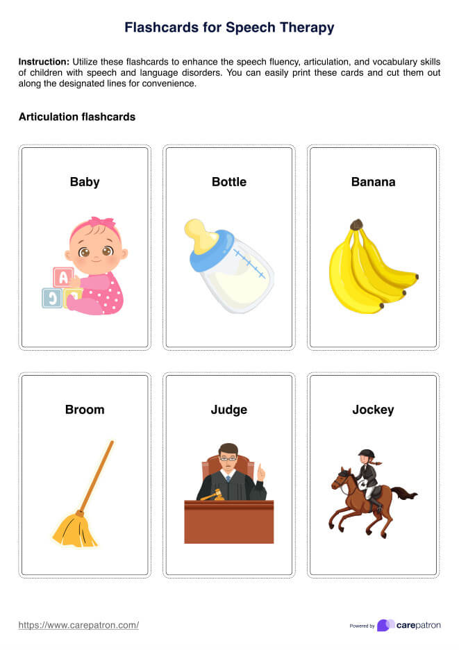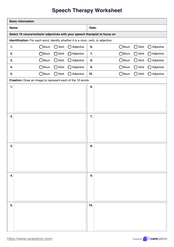 Improve speech and language therapy outcomes with our free worksheets. Distribute to your patients, and collaborate with their speech and communication capabilities to enhance articulation and make significant strides in client progress.