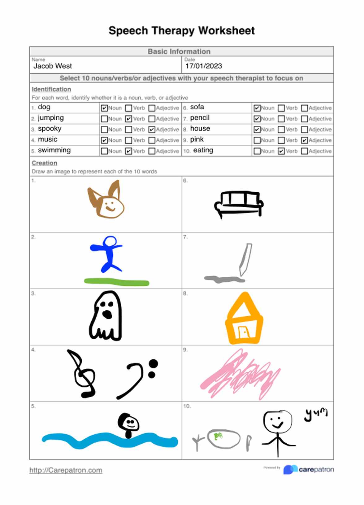 There is no one right way to write speech therapy worksheets, however, it is important that the client is in charge and has full control over the content. After all, the worksheet is measuring their progress, not yours. Make sure that all letters and words are clearly noted, and that any completed exercises are ticked.