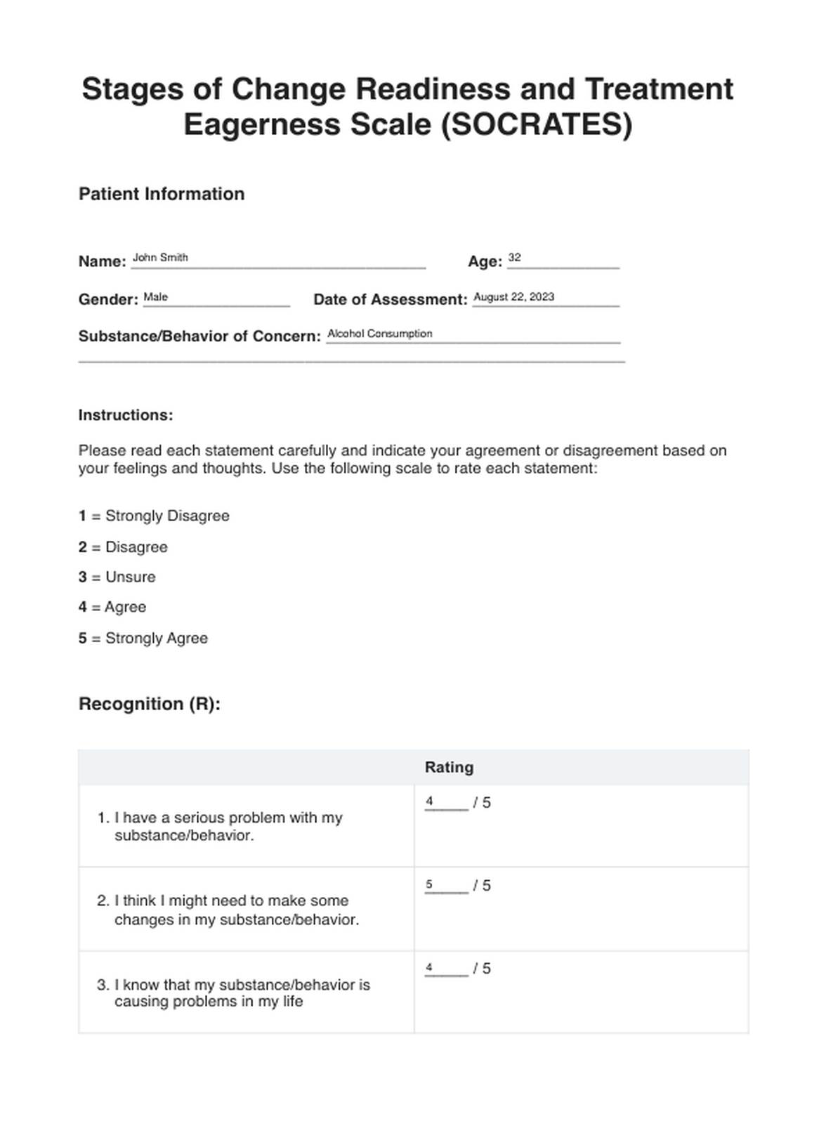 Stages of Change Readiness and Treatment Eagerness Scale (SOCRATES) Template
