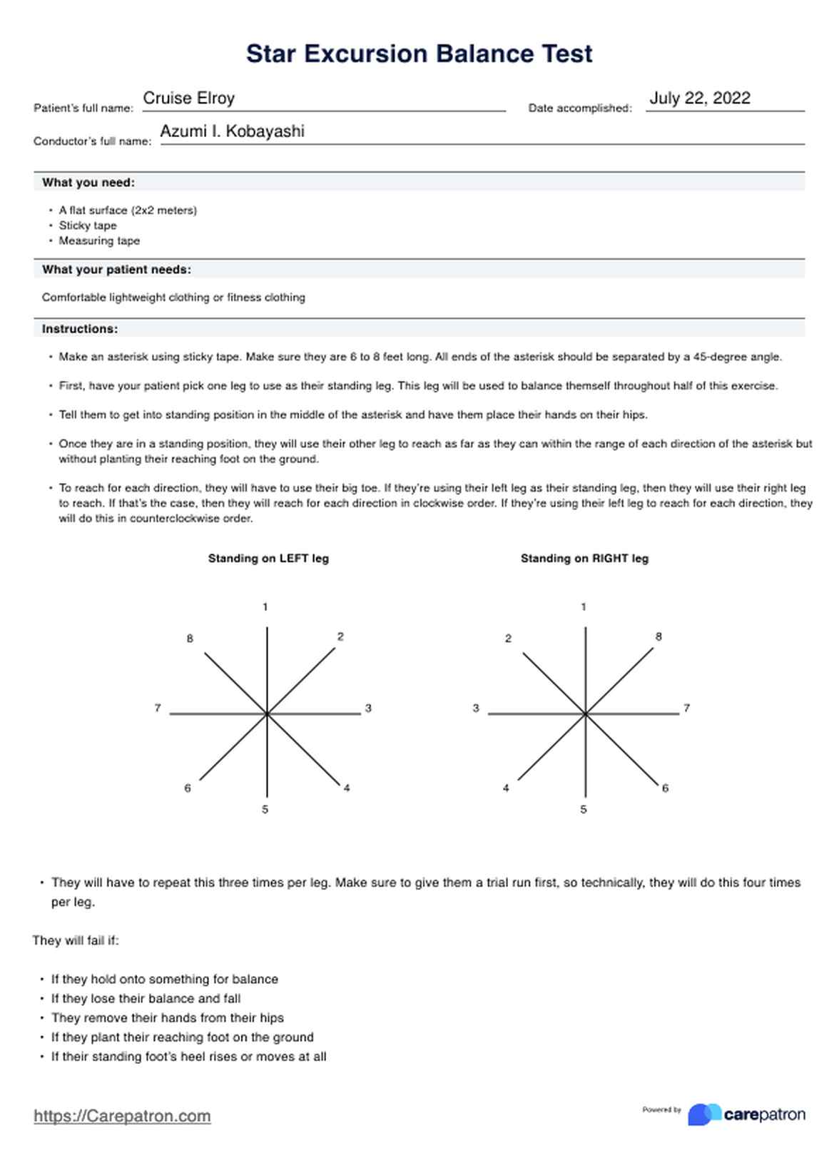 Star Excursion Balance Test Template