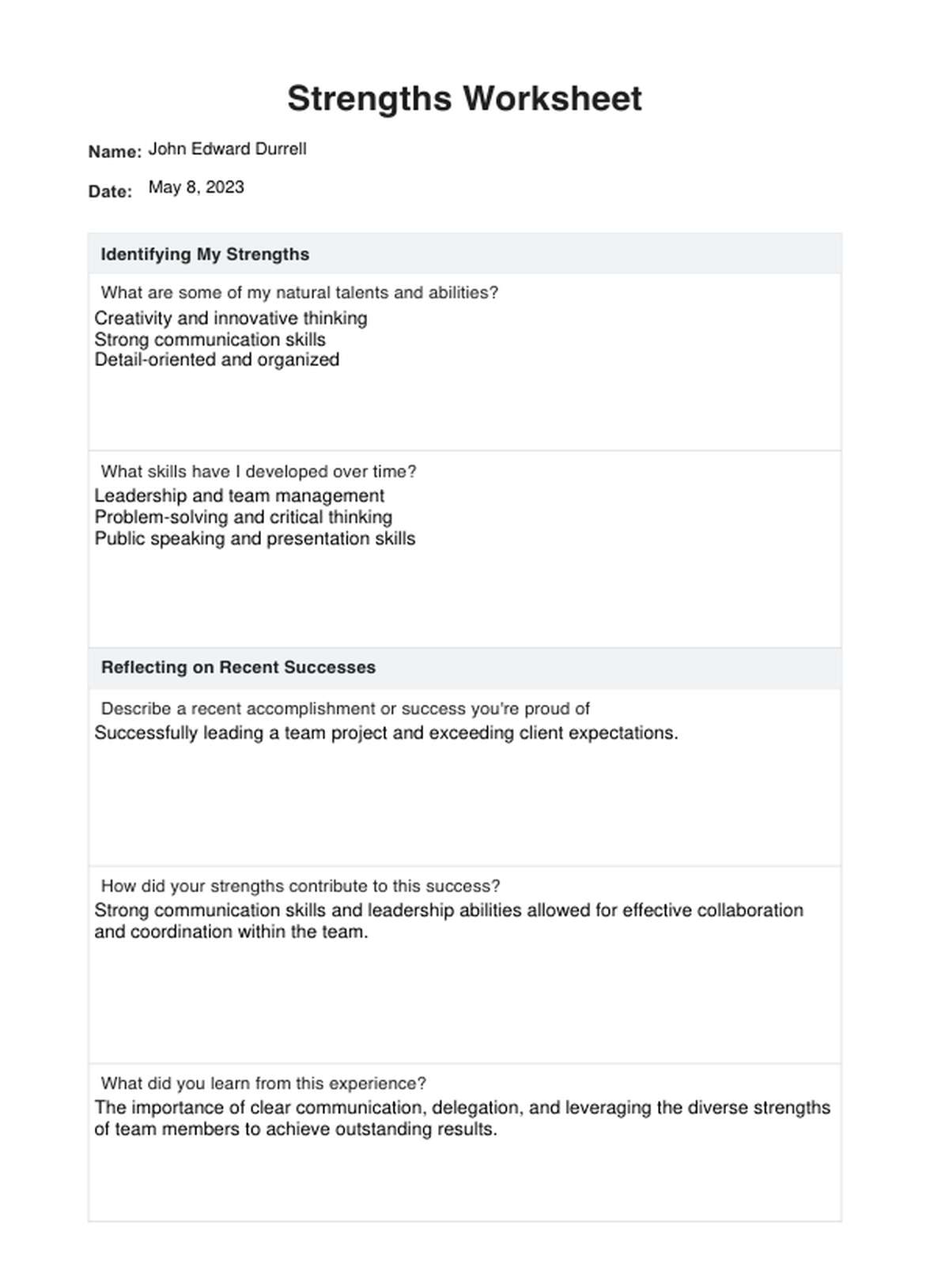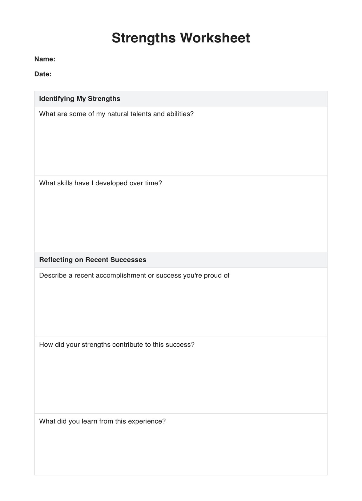 A Strengths Worksheet makes it easy for mental health professionals to assess their client’s strengths and abilities and tailor their approach accordingly.