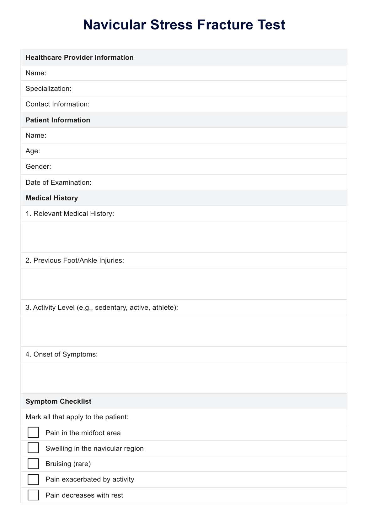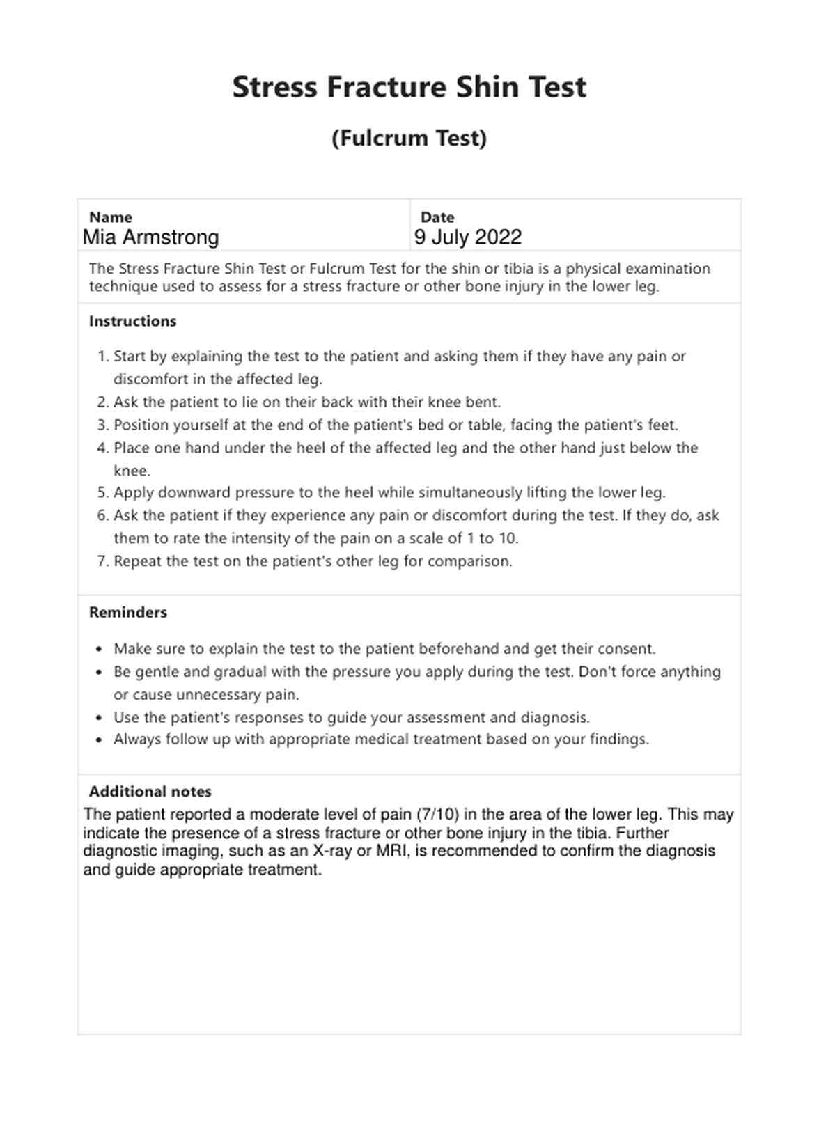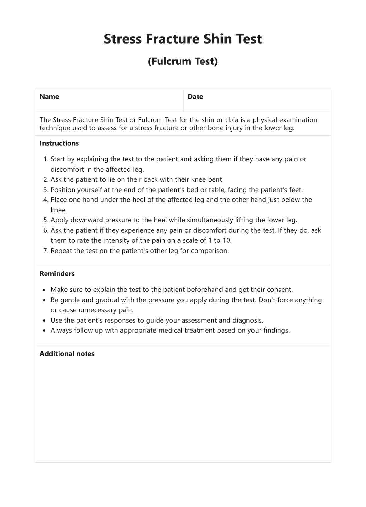 Get a better understanding of the Stress Fracture Shin Test with our free PDF download. Learn what it entails and access our example now.