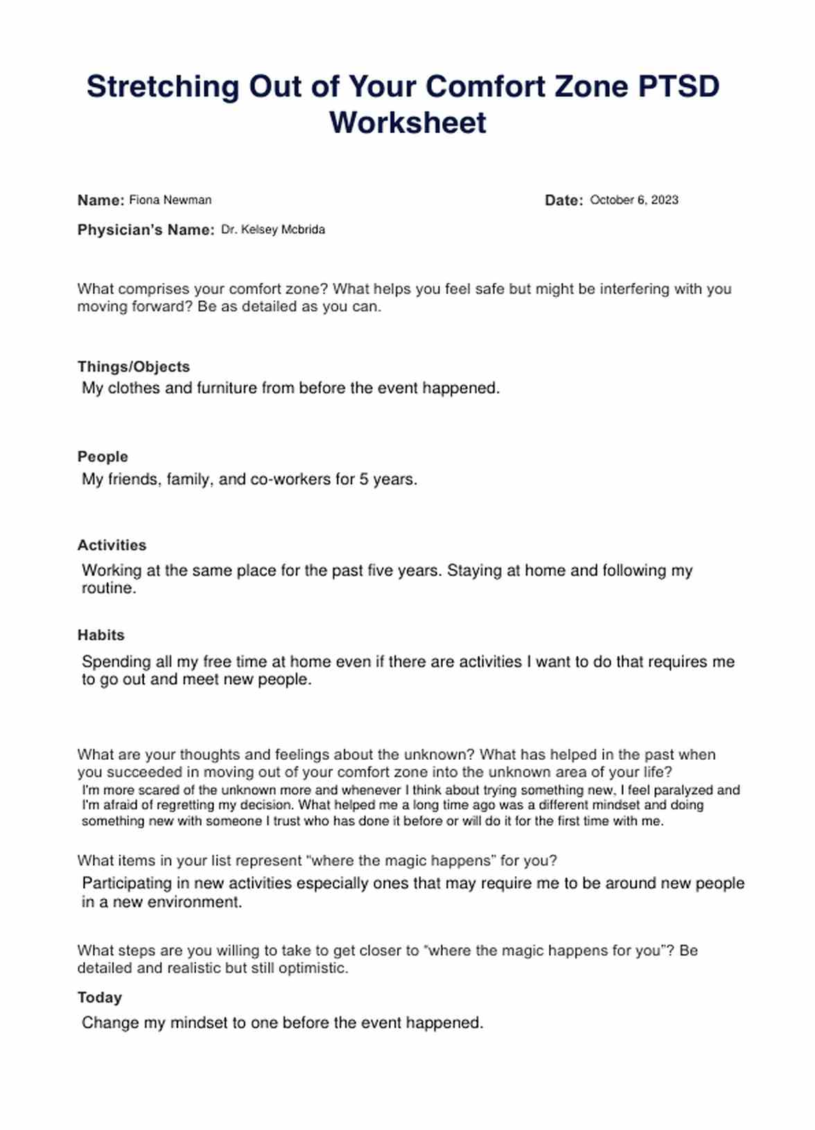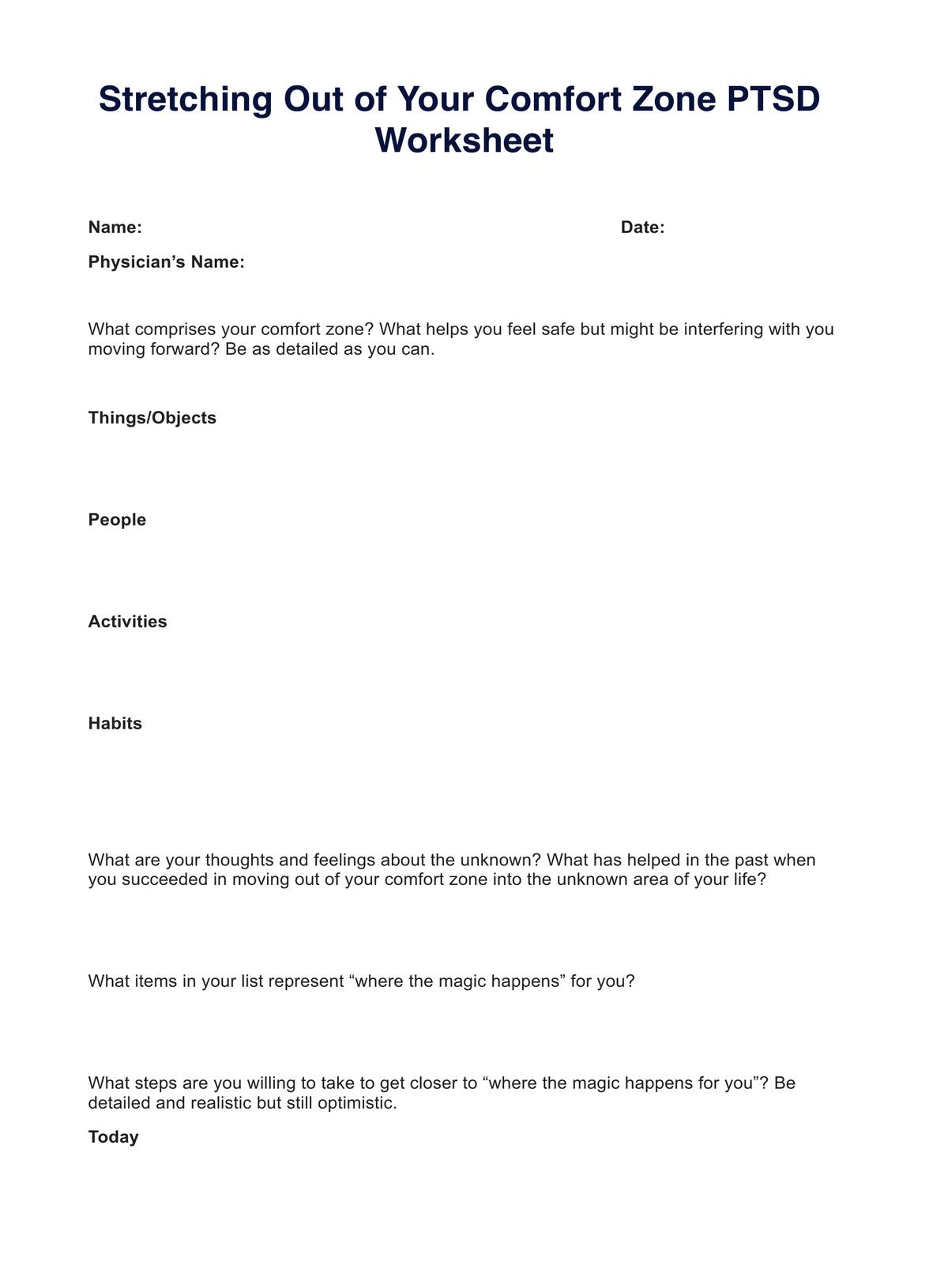 Stretching Out of Your Comfort Zone PTSD Worksheet Template