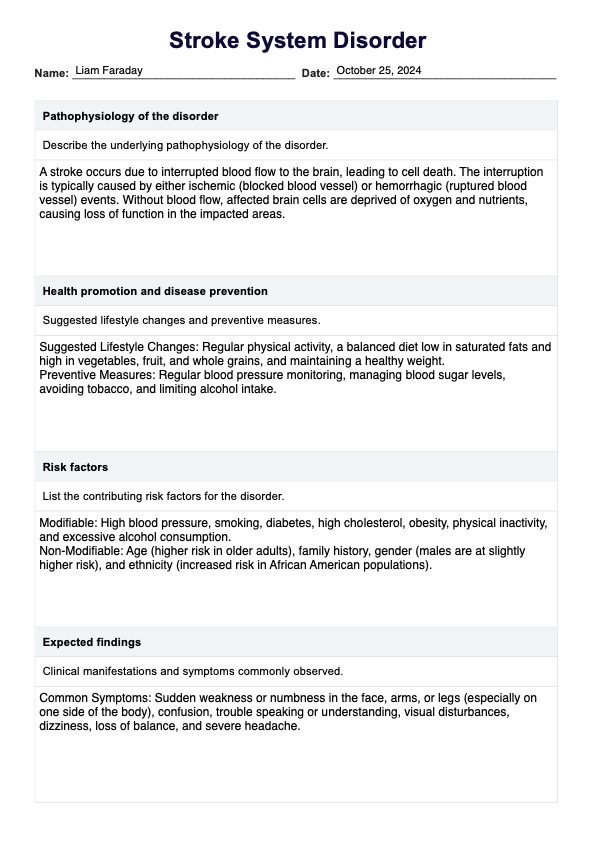 Enhance learning with our Stroke System Disorder Template. Use this essential educational tool to improve patient care.