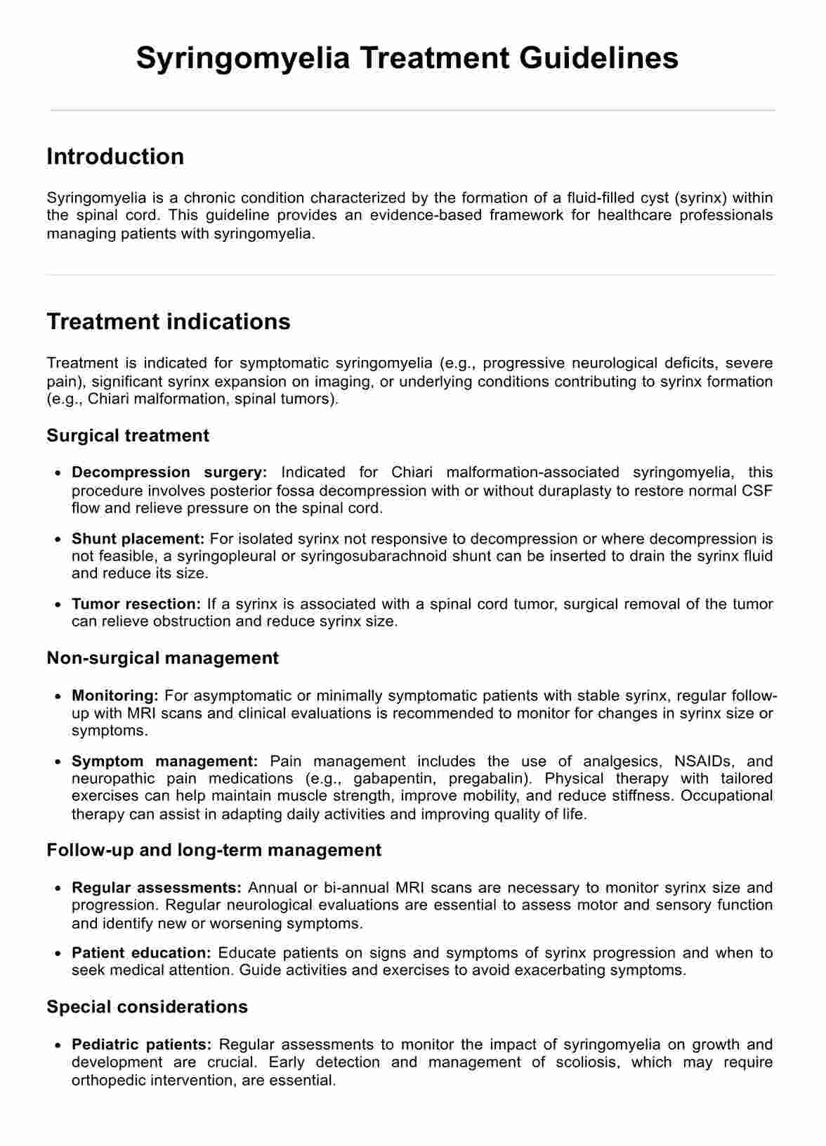 Discover comprehensive syringomyelia treatment guidelines for healthcare professionals. Learn about diagnosis, treatment options, and management.