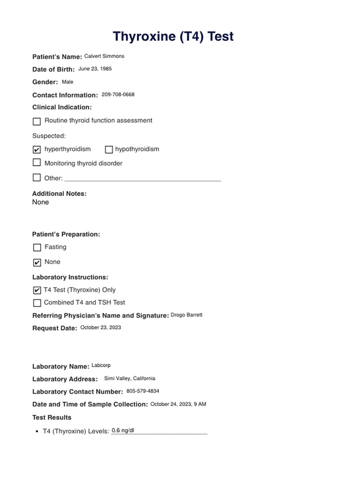 Learn more about the Thyroxine (T4) Test, its relevance, function, and result interpretation with our guide packed with information and a free template.