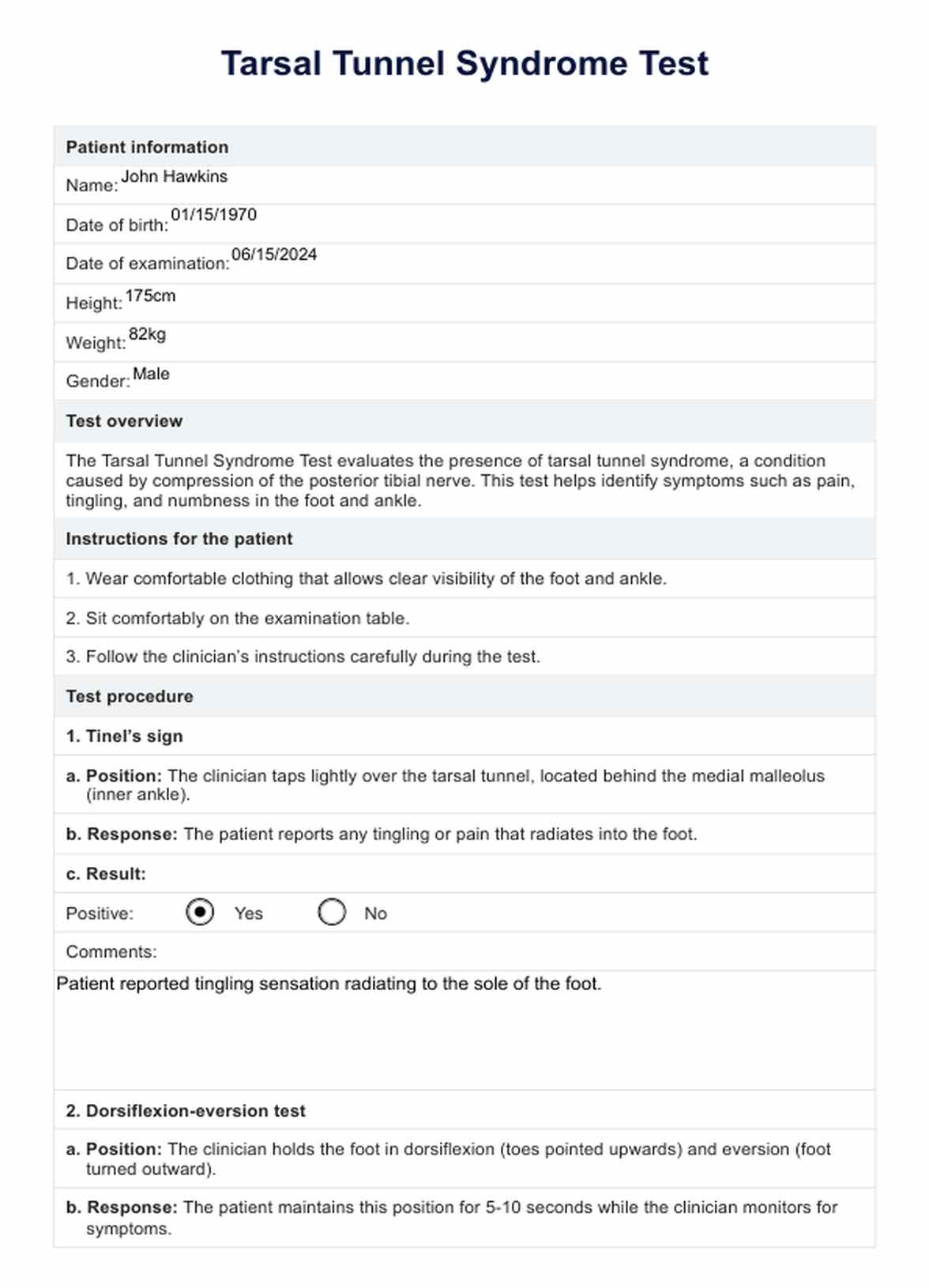 Tarsal Tunnel Syndrome Test Template