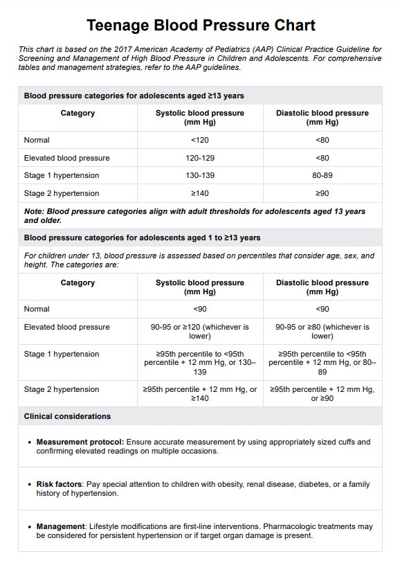 Access Carepatron's free Teenage Blood Pressure Chart PDF to support clinical assessments. Download the template now.