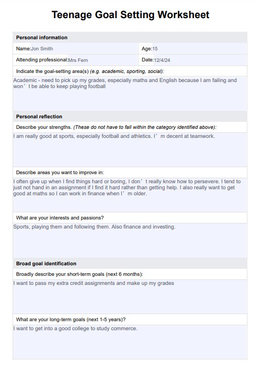 Implement effective goal-setting strategies for teenage clients with our comprehensive worksheet, a resource designed to foster personal growth and achievement.