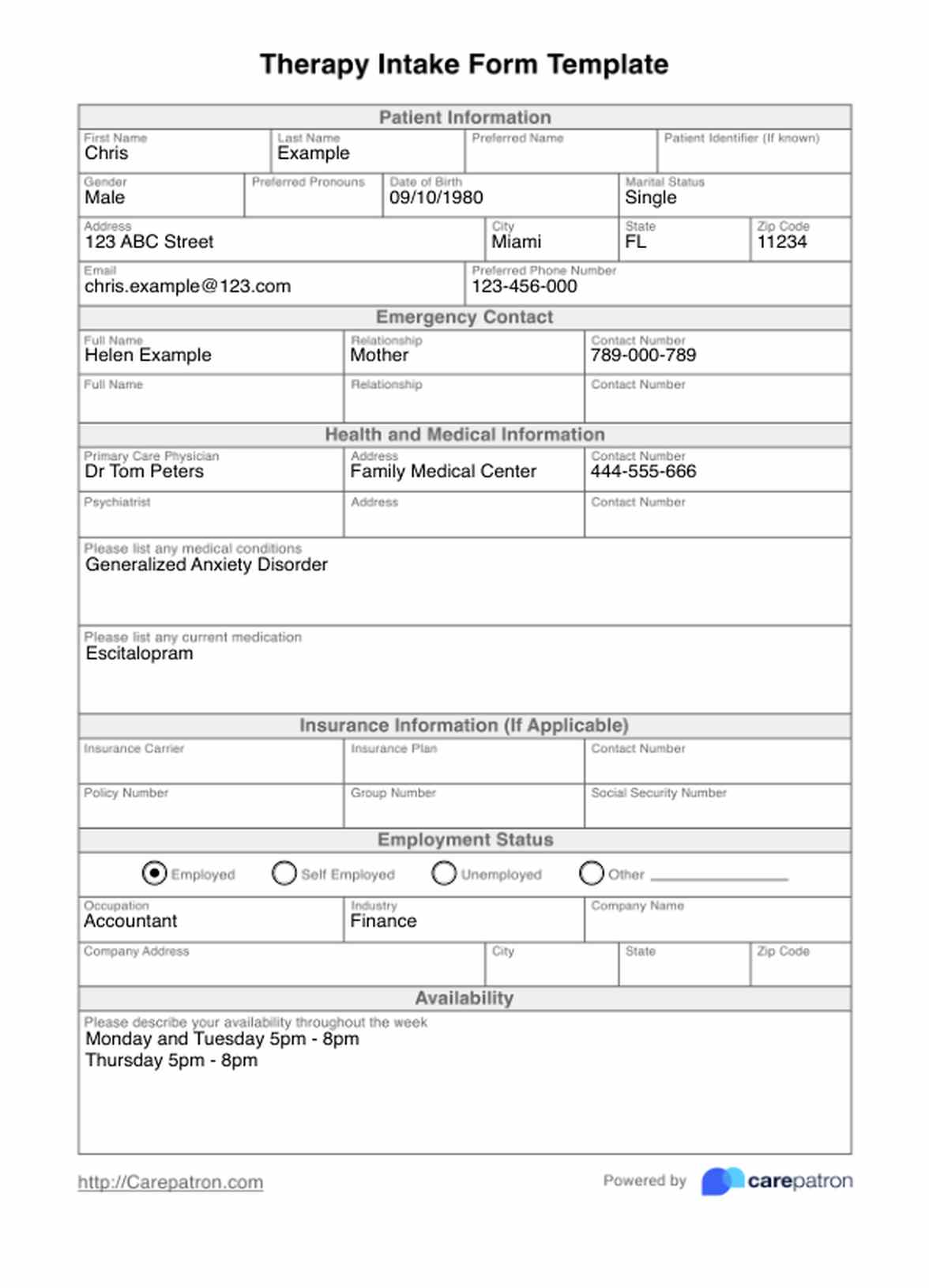 Because different patients will have diverse needs, it can be hard to know exactly what to include on a therapy intake form. There are some essentials that will assist in onboarding a client and ensuring the first appointment runs smoothly. These include: