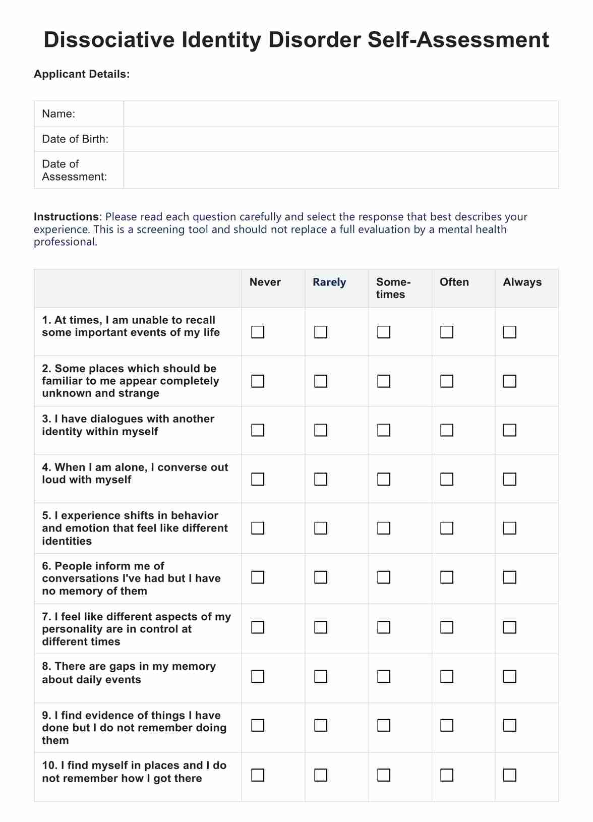 A comprehensive therapy worksheet template that improves patient engagement. This worksheet will allow you to obtain accurate data and greatly enhance your treatment plans.