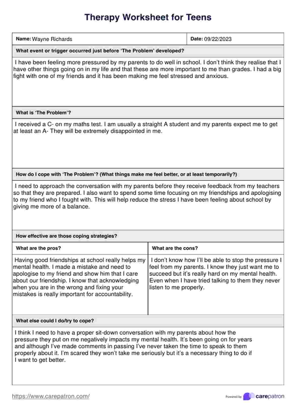 Download Carepatron's free Therapy Worksheets for Teens in PDF and support teenagers in exploring emotions, building skills, and addressing challenges.