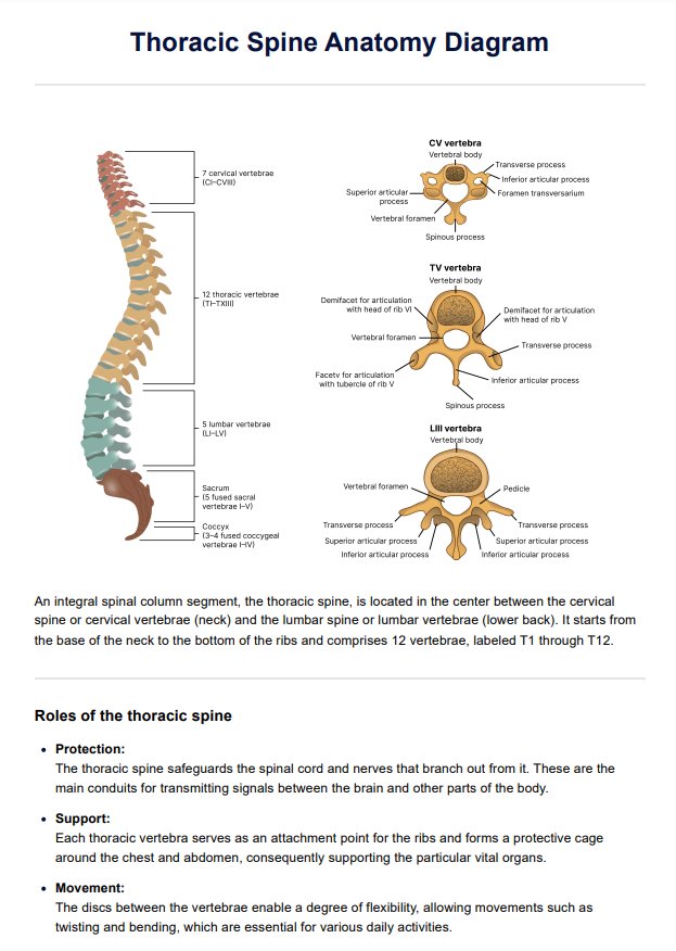 Use our Thoracic Spine Anatomy Diagram to get a better understanding of the thoracic spine's anatomy, purposes, and functions for educational and medical purposes.