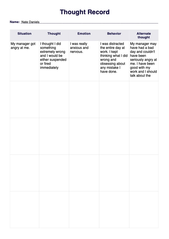 Thought Record Template can be used in various contexts to help individuals better understand how their thoughts and emotions shape their responses to different situations. This template is used for mental health interventions such as treating anxiety or depression, but it can also be beneficial for personal growth and development.