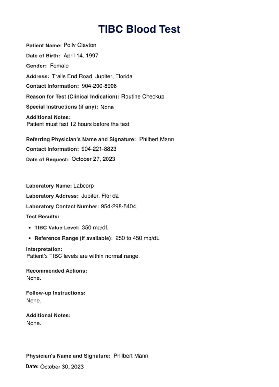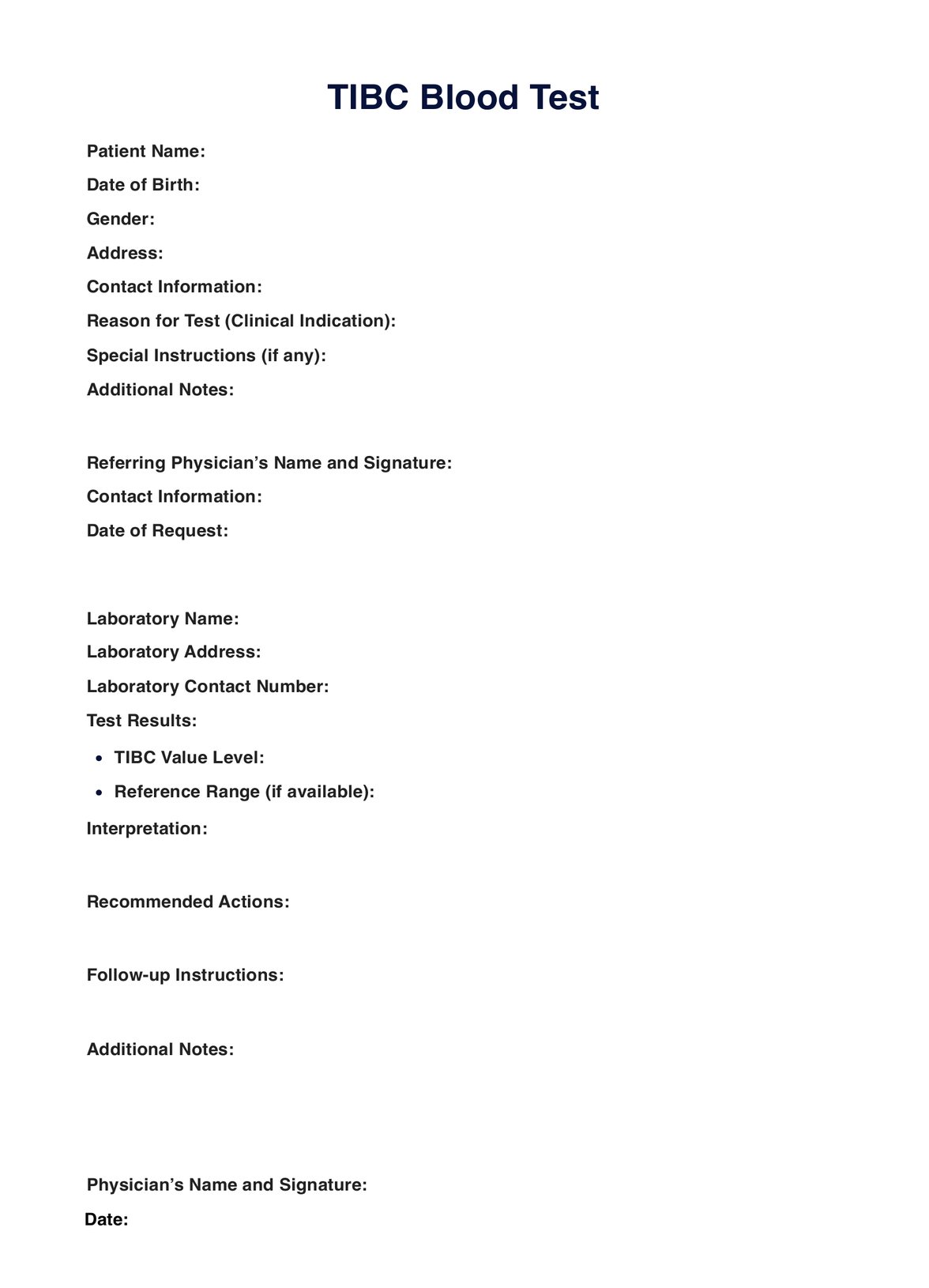TIBC Blood Test Template