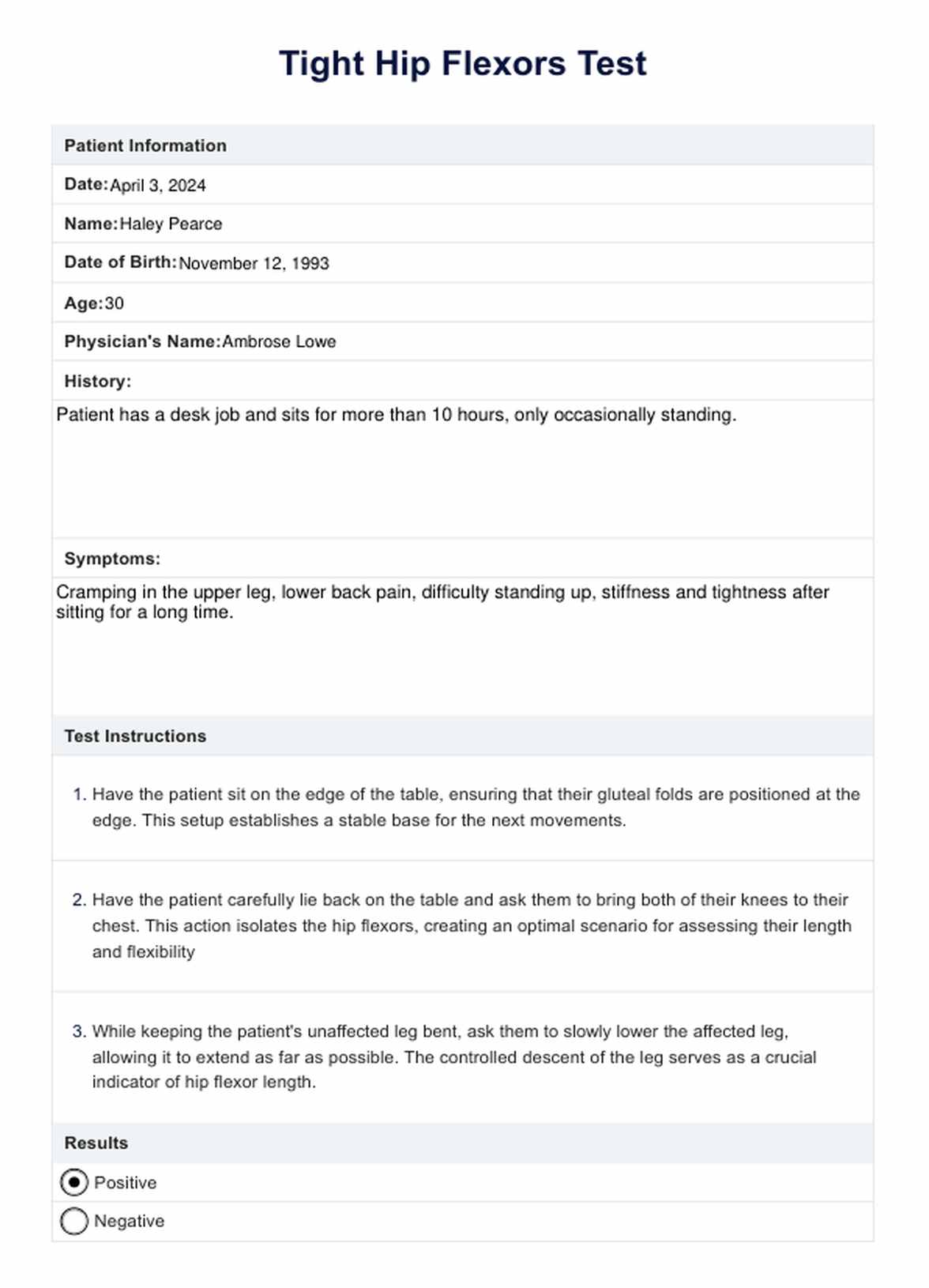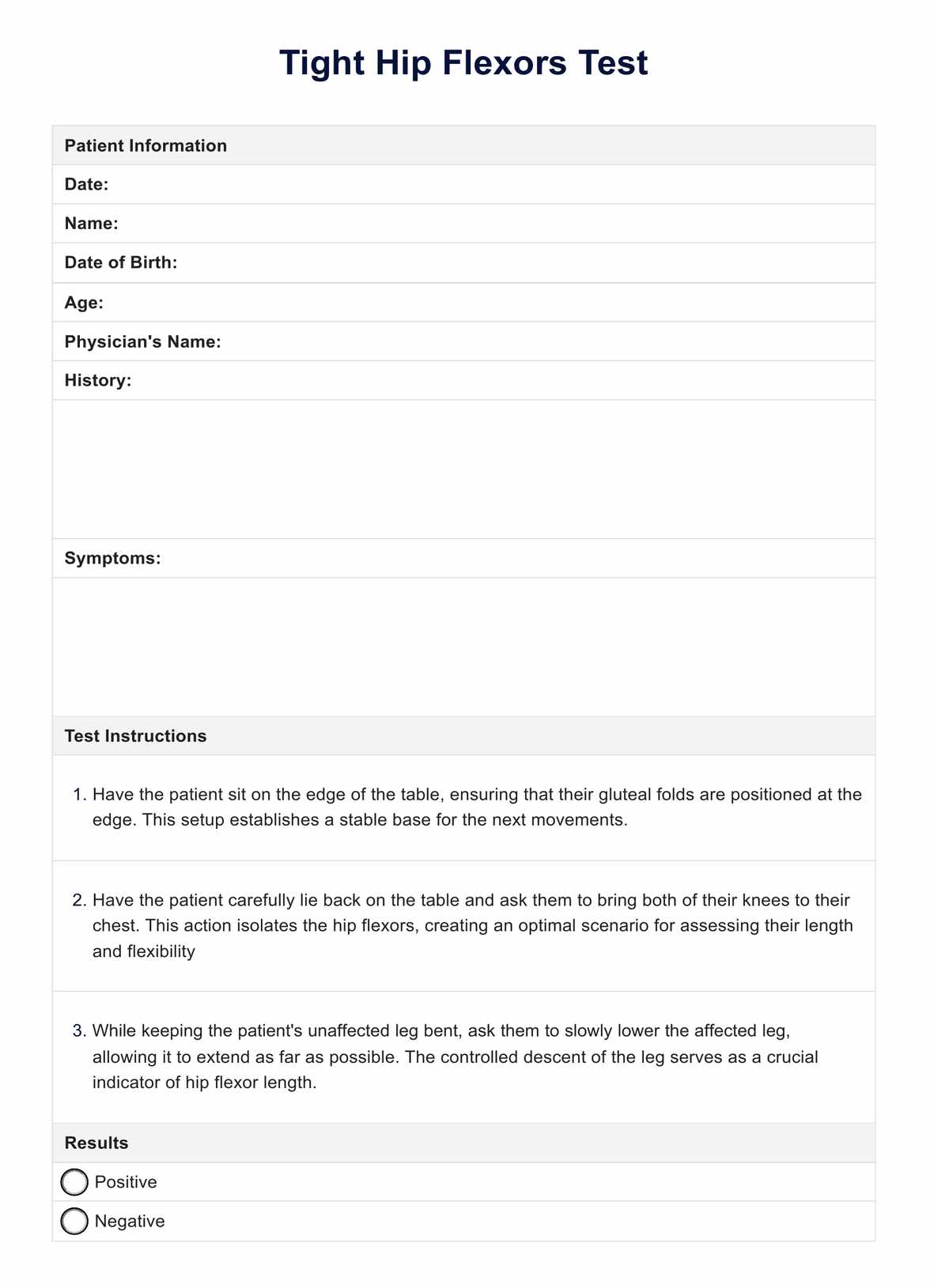 Assess the tightness of your patient's hip flexor muscles with a tight hip flexors test. Click here for a guide and free template!