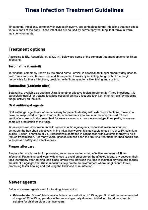 Learn about the guidelines and treatment options for tinea infections with Carepatron's free PDF download and effectively manage this common skin condition.