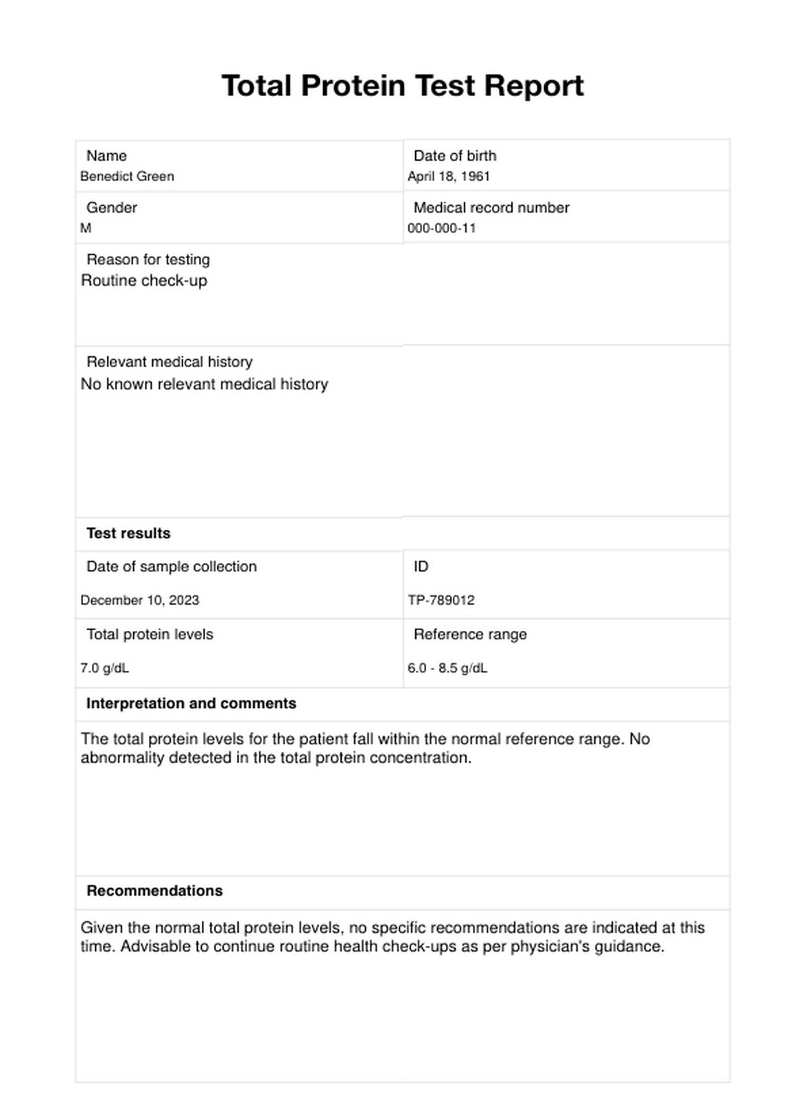 Explore how a Total Protein Test works. Get a free template for your report and create easy documentation in minutes.