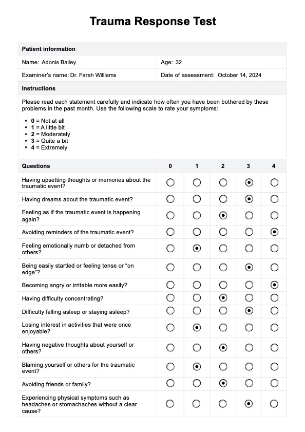 Trauma Response Test Template