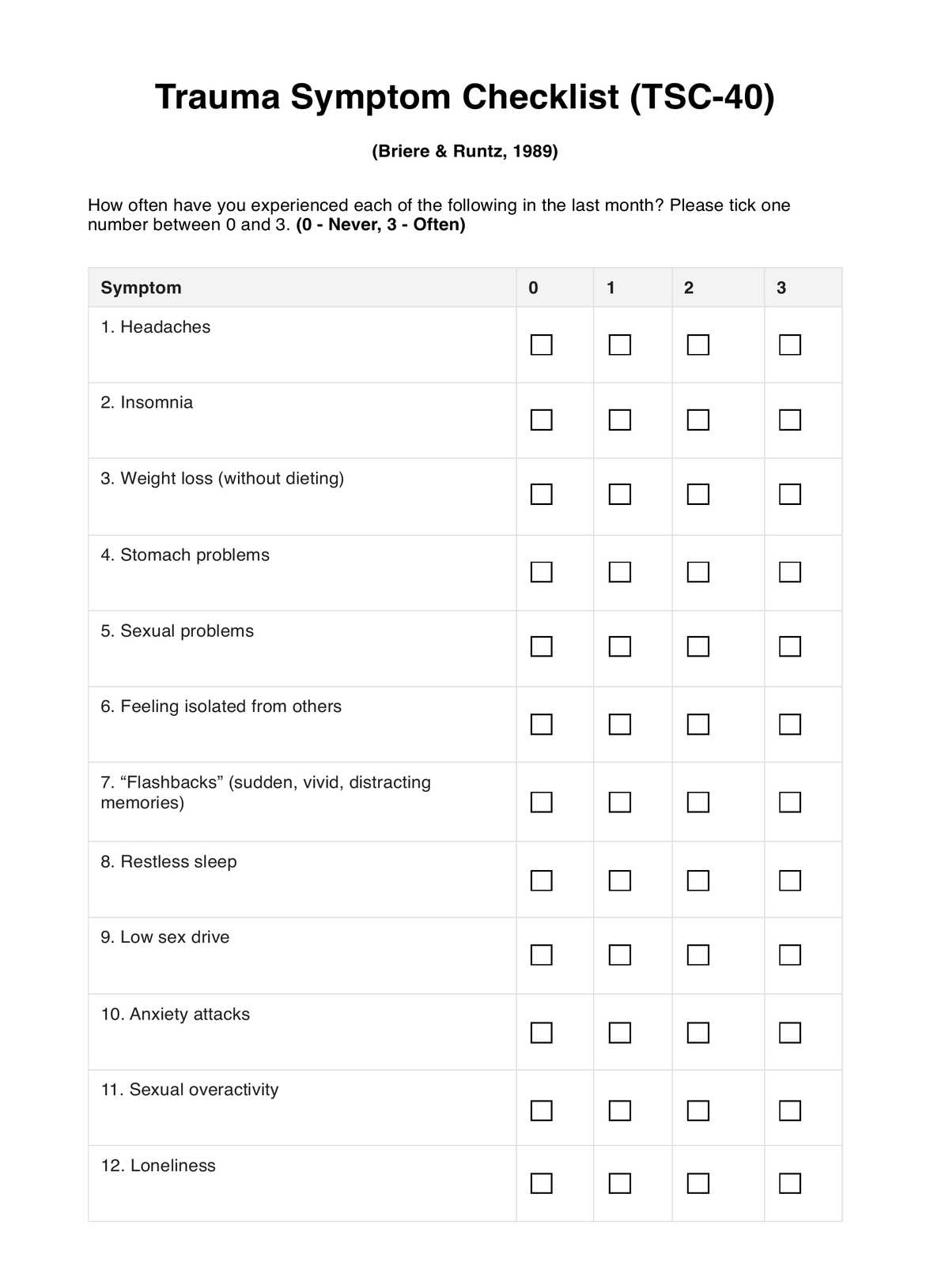 You can use it as much as you want. The spaces the worksheet has are limited, so we recommend having multiple copies to better keep track of everything in the patient's trauma timeline. We also recommend using this every now and then throughout the patient's healing journey so you and your patient can see how far they have come.