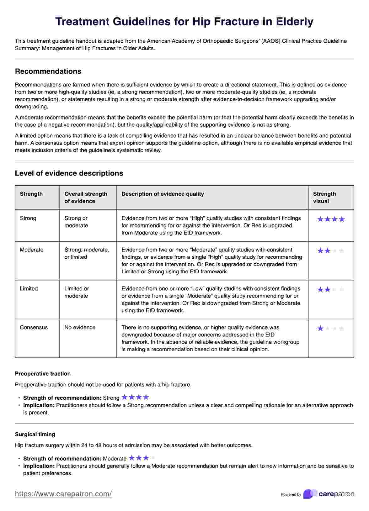 Treatment Guidelines for Hip Fracture in Elderly Handout Template