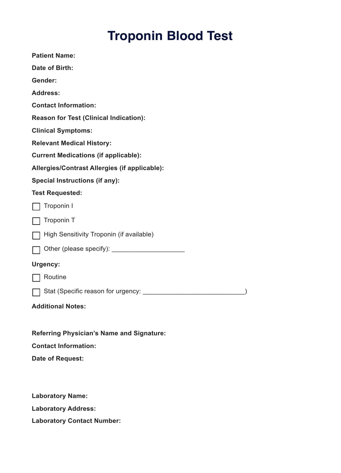 Understand the uses, result interpretations, etc., of the troponin blood test with our guide. Click here for more information and a free template
