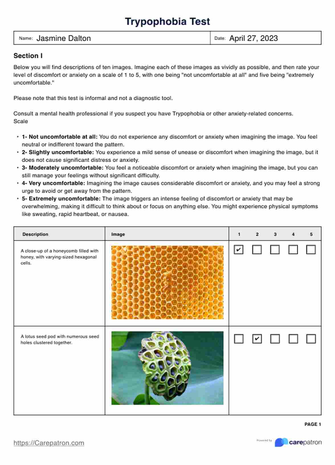 The Trypophobia Test is an informal self-assessment tool created by various mental health professionals and researchers interested in understanding the phenomenon of Trypophobia.