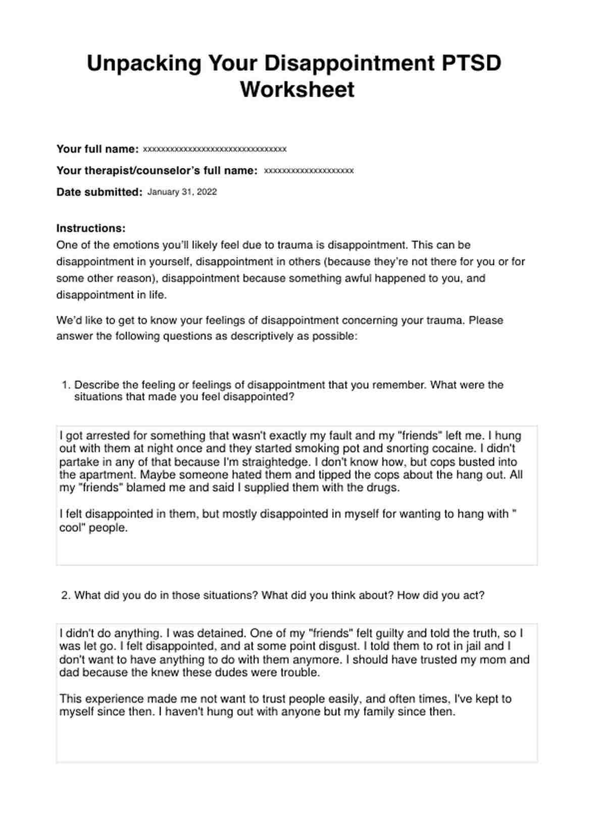 Here are examples of PTSD worksheets that you can issue alongside the Unpacking Your Disappointment PTSD Worksheet: