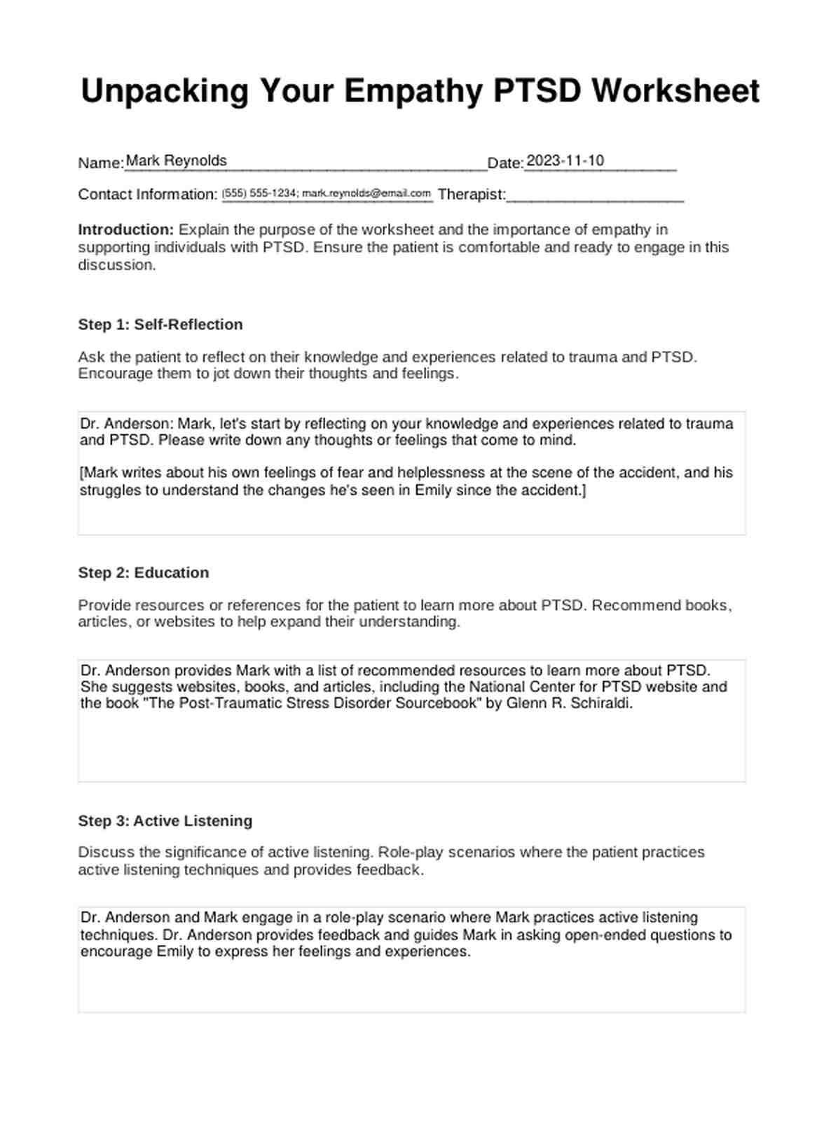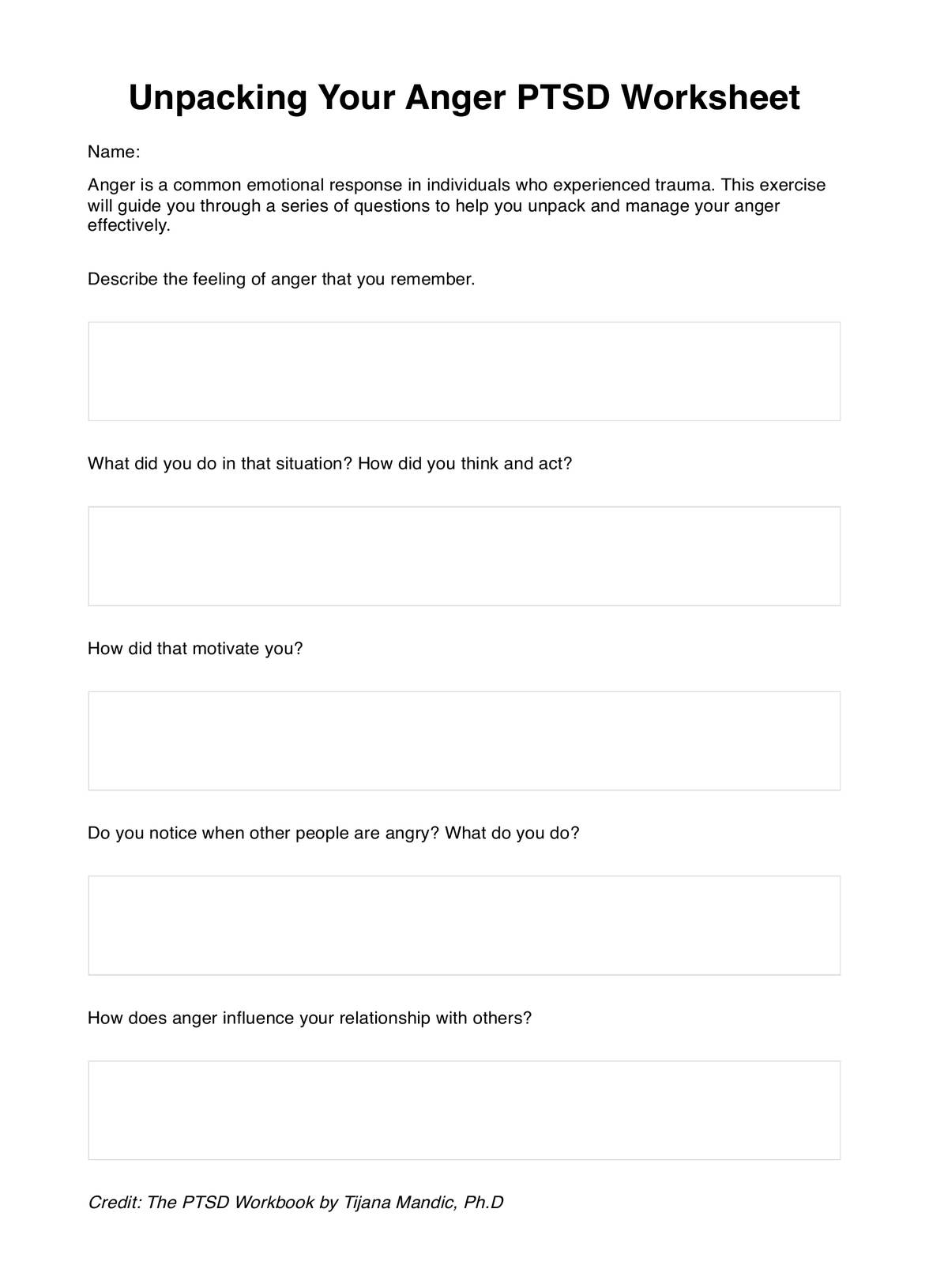 The worksheet is best used to foster understanding and support for individuals dealing with PTSD, whether you are a friend, family member, therapist, or part of a support group.