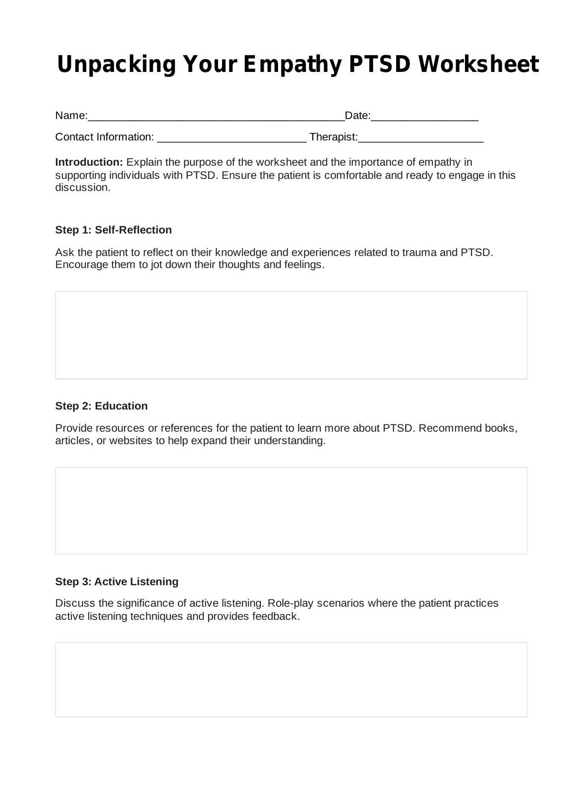 Enhance empathy and support for those with PTSD using the Unpacking Your Empathy PTSD Worksheet—a valuable resource for understanding and healing.