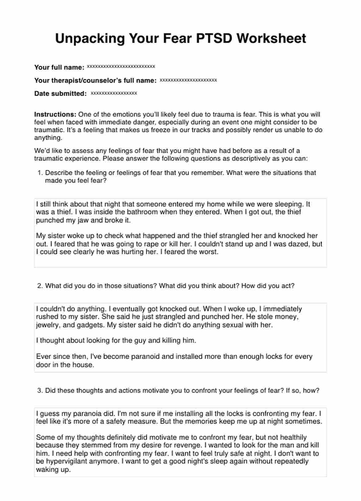 Here are other examples of PTSD worksheets you can use alongside Unpacking Your Fear: