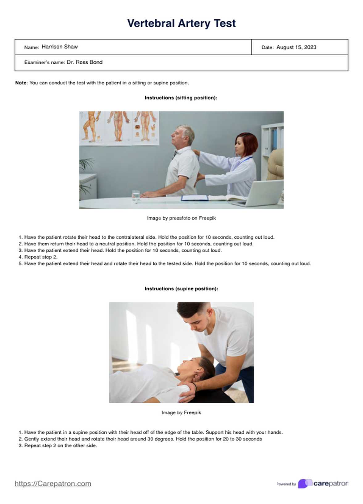 The VAT test assesses a patient’s vertebral artery blood flow and is one of the tests a practitioner can use to determine if a patient has vertebrobasilar insufficiency or VBI.