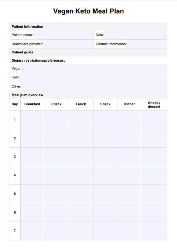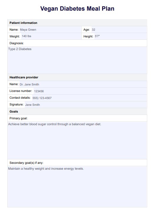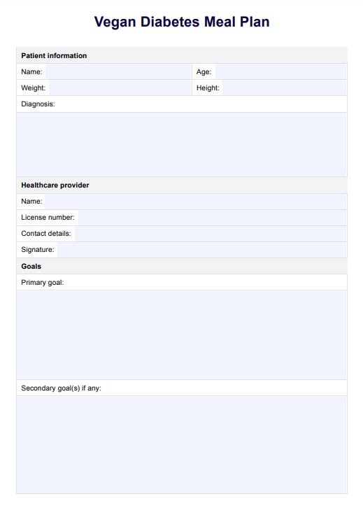 Vegan Diabetes Meal Plan Template