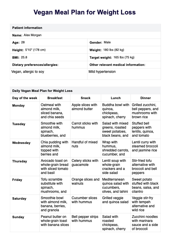 Discover Carepatron's Vegan Meal Plan for Weight Loss to collaborate with patients in better meal planning.